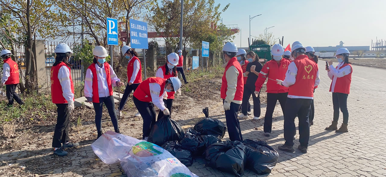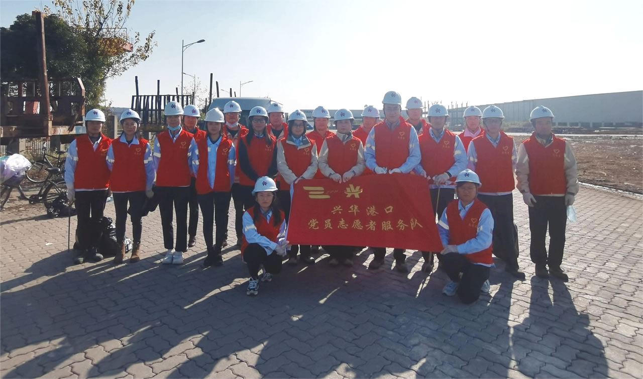 2022年11月,兴华港口党支部开展清理美化兴华港区环境卫生党员志愿服务活动
